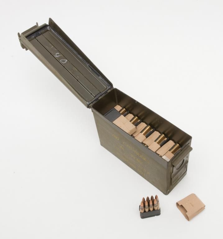 196 rounds of .30 caliber M2 ammo in metal clips  for the M1 Garand semi-auto rifle.  Est.:   200-$400.