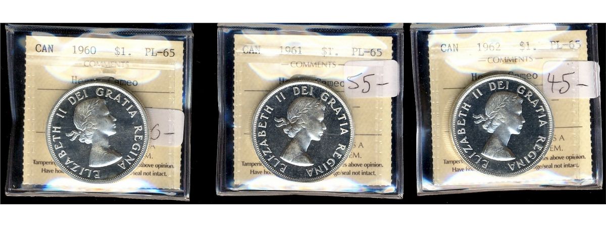1960 $1, 1961 & 1962 ICCS PL65 Heavy Cameo.