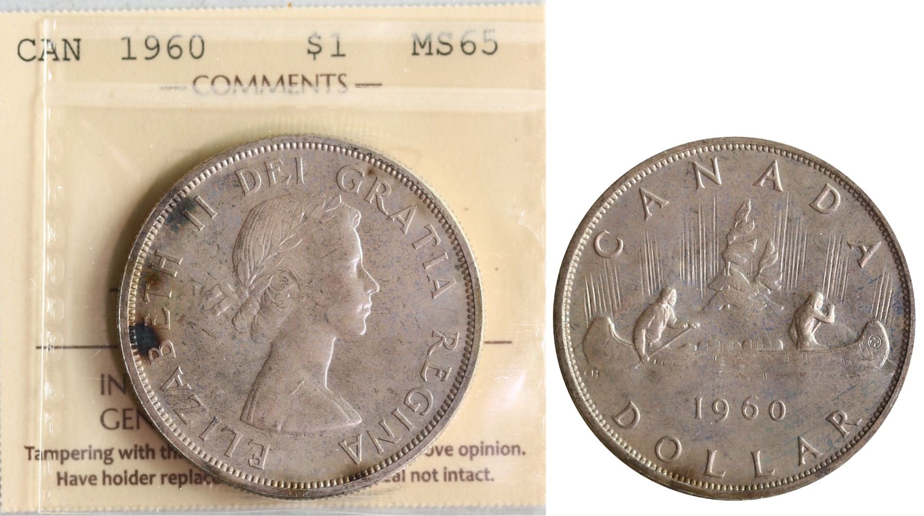 1960 $1 ICCS Gem Mint State-65 Lightly toned.