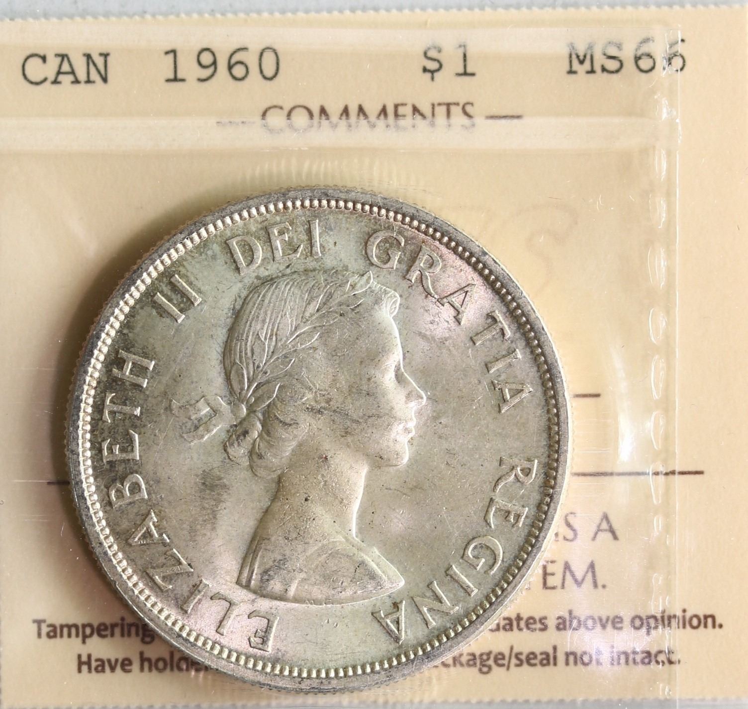 1960 $1 ICCS Superb Gem Mint State-66 Brilliant and lustrous. Very scarce in this top condition. Highest graded we have seen and handled.