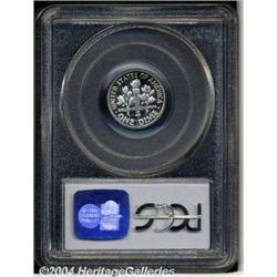 1960 10C PR69 Deep Cameo PCGS. An essentially flawless proof masterpiece, with flashy mirrors and startling contrast. A tiny amber toning specks under Roosevelt's eye is noted, but does not detract from the coin's great eye appeal. One of the finest this cataloger has seen. Population: 112 in 69, none finer as a Deep Cameo (3/04). <BR><BR><B>Important notice:</B> Heritage usually auctions material at the rate of 200-250 lots per hour. On some occasions eBay Live bid software or the Internet may not be able to keep up with the pace of the auction. We recommend placing a realistic absentee bid now as insurance to avoid disappointment. Occasionally the auctioneer may eliminate or reject an eBay Live bid, and the auctioneer may also reopen a lot after the close of the eBay live bidding (usually because we missed an audience bid), and may reject your bid even if it shows you as the winning bidder. By bidding via eBay Live, you agree that Heritage may award the lot to another bidder at its sole discretion under the circumstances described above or any other reasonable circumstances. Since eBay bids are not shown to us until we open the lot on the floor, we treat those bids just like floor bids. In most cases the floor responds before the eBay bid is presented to us, due to Internet lag time, so for consistency we have made it a policy that floor bids are always considered first over tie eBay live bids. Also please note that all Heritage lots purchased through eBay Live carry a 20% Buyer's Premium. Please make sure you read the Terms and Conditions before you bid. <BR><BR><B>IMPORTANT ANNOUNCEMENT ABOUT RESERVES:</B> Heritage now divulges all reserves on its web site 7 days before every auction. If you want to know whether the reserve on this lot has been met, and if not, what the reserve amount is, please visit this lot page on the HeritageCoin.com web site, or email: bid@HeritageGalleries.com