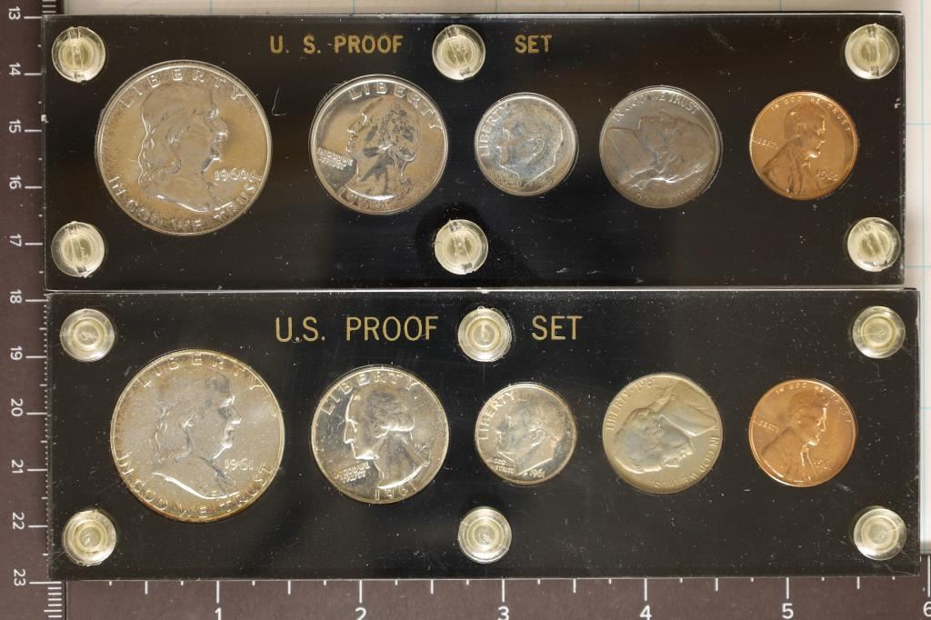 NICE EARLY US PROOF SETS THAT LOOK NICE BEING DISPLAYED. THE 1961 HAS SOME TONING.