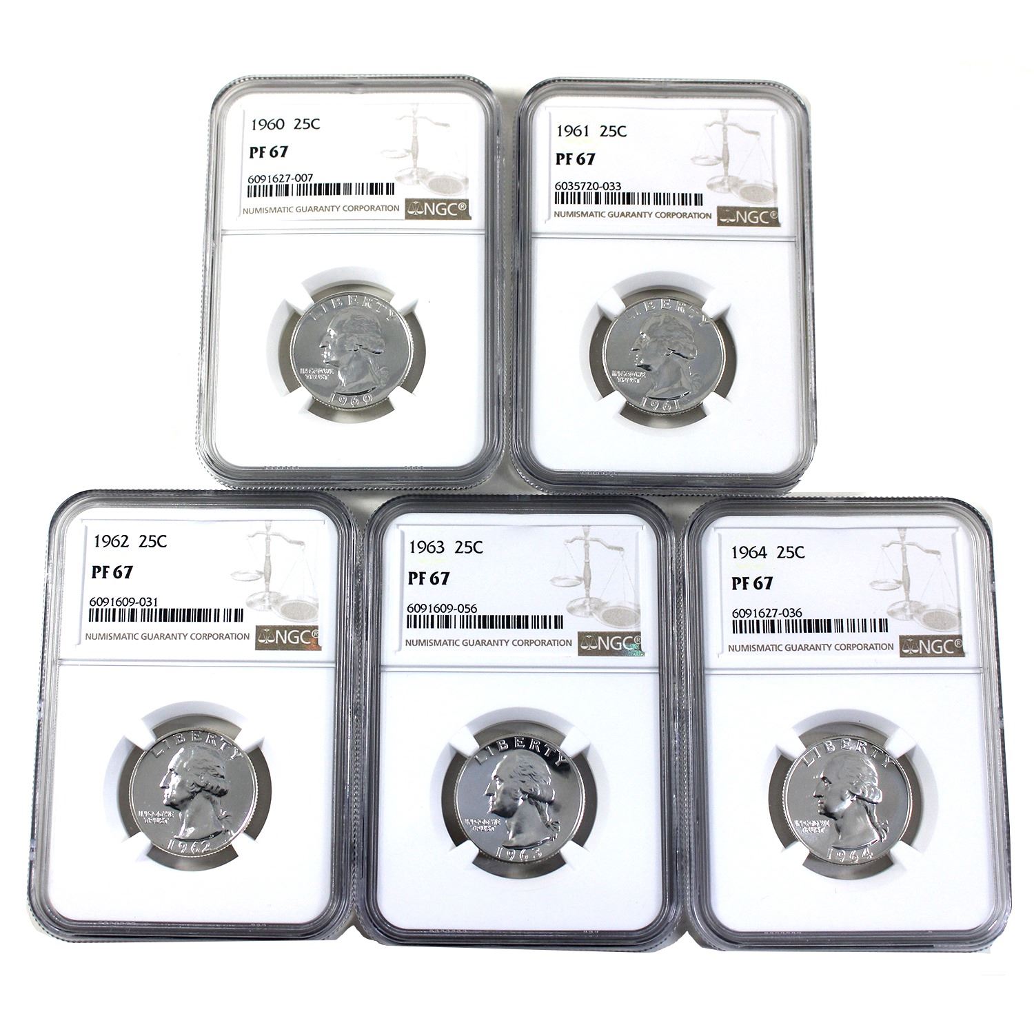 1960-1964 USA Quarters NGC Certified PF67. 5pcs