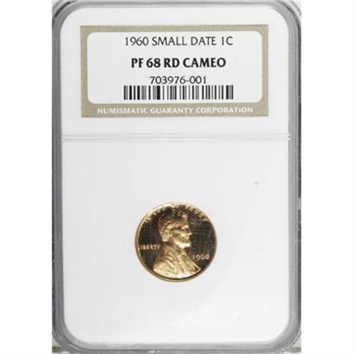 <B>1960 1C Small Date PR68 Cameo NGC.</B></I> NGC Census: (0/0). PCGS Population (26/0). Numismedia Wsl. Price for NGC/PCGS coin in PR68: $180. (#83392)<BR><BR><b>Shipping:</b> Coins & Currency (<a target="_blank" href="http://www.heritageauctions.com/common/shipping.php">view shipping information</a>)