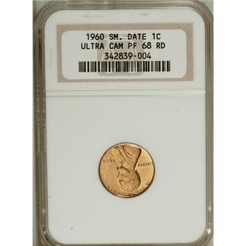 <B>1960<1C> Small Date PR68 Red NGC.</B></I> A fully struck, brilliant Superb Gem proof, with bright, cherry-red color and pristine surfaces overall. Census: 73 in 68, 16 finer (8/06).