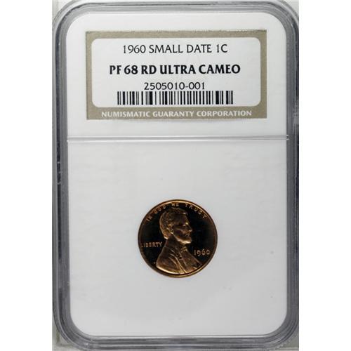 <B>1960<1C> Small Date PR68 Red Ultra Cameo NGC.</B></I> Boldly struck with deeply reflective copper-orange surfaces and richly frosted devices. An amazing piece. Census: 49 in 68 Red Ultra Cameo, 4 finer (9/06).
