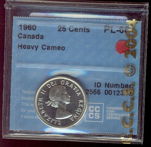 1960 25¢ CCCS PL66 Heavy Cameo.