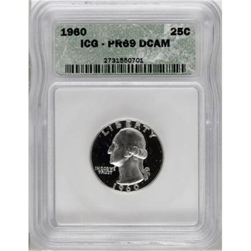 <B>1960 25C PR69 Deep Cameo ICG.</B></I> NGC Census: (20/0). PCGS Population (32/0). Numismedia Wsl. Price for NGC/PCGS coin in PR69: $650. (#95992)<BR><BR><b>Shipping:</b> Coins & Currency (<a target="_blank" href="http://www.heritageauctions.com/common/shipping.php">view shipping information</a>)