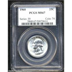 <table><tr><td><TABLE cellSpacing=0 cellPadding=0 width="100%" bgColor=#000000 border=0><TBODY> <TR><TD width="100%"><TABLE cellSpacing=1 cellPadding=3 width="100%" border=0><TBODY><TR><TD width="100%" bgColor=#79735c><FONT face=arial color=#ffffff size=3><B>Description</B> </FONT></TD></TR><TR><TD width="100%" bgColor=#ffffff><FONT face=arial size=2><B>1960 25C MS67 PCGS.</B></I> It seems inconceivable that no more than four MS67s have been certified by PCGS of this late-date issue (7/03). Yet, that is the case, and none are finer at either of the major services. This is a brilliant coin that shows bright, satiny mint luster and no abrasions are apparent on either side. Exceptional quality, just as one would expect from a PCGS MS67. </FONT></TD></TR></TBODY></TABLE></TD></TR></TBODY></TABLE><BR><A name=PricesRealized></A><TABLE cellSpacing=0 cellPadding=0 width="100%" bgColor=#000000 border=0><TBODY><TR><TD width="100%"><TABLE cellSpacing=1 cellPadding=3 width="100%" border=0><TBODY><TR><TD width="100%" bgColor=#79735c><A name=PR><FONT face=arial color=#ffffff size=3><B>Previous Prices from Heritage Auctions</B> </FONT></A></TD></TR><TR><TD bgColor=#f6f6ed><TABLE cellSpacing=0 cellPadding=0 width="100%" border=1><TBODY><TR><TD align=middle width="33%"><B>Date</B></TD><TD align=middle width="33%"><B>Service</B></TD><TD align=middle width="33%"><B>Price</B></TD></TR><TR bgColor=whitesmoke><TD width="33%"><B>05/05/2003</B></TD><TD width="33%">NGC</TD><TD width="33%">$235.75</TD></TR><TR bgColor=whitesmoke><TD width="33%"><B>01/13/2003</B></TD><TD width="33%">NGC</TD><TD width="33%">$379.50</TD></TR></TBODY></TABLE></TD></TR><TR><TD bgColor=#ffffff><FONT face=arial size=1 ?>PLEASE NOTE: All prices realized reflect the final hammer price PLUS the buyer's premium in auctions that charge a buyer's premium. Each item has a notation at the top of the listing indicating whether that lot included a buyer's premium. Example: A item that sells with a final hammer price of $100 and a 20% buyer's premium will display with a price realized of $120. All information listed is intended to be as accurate as possible, but errors are possible. Please use this guide carefully and inform us of any inaccuracies. </FONT></TD></TR></TBODY></TABLE></TD></TR></TBODY></TABLE><BR><TABLE cellSpacing=0 cellPadding=0 width="100%" bgColor=#000000 border=0><TBODY><TR><TD width="100%"><TABLE cellSpacing=1 cellPadding=3 width="100%" border=0><TBODY><TR><TD width="100%" bgColor=#79735c colSpan=6><FONT face=arial color=#ffffff size=3><B>Price Guide*</B> </FONT></TD></TR><TR bgColor=#f6f6ed><TD align=middle><B>Grade</B> </TD><TD align=middle><B>Coin World<BR>(Trends)</B> </TD><TD align=middle><B>Numismedia<BR>Retail</B> </TD><TD align=middle><B>Numismedia<BR>Wholesale</B> </TD><TD align=middle><B>Coin<BR>Universe</B> </TD><TD align=middle><B>Heritage<BR>Value Index</B> </TD></TR><TR bgColor=#ffffff><TD align=middle>66</TD><TD align=right>---</TD><TD align=right>$63.00</TD><TD align=right>$50.00</TD><TD align=right>$100.00</TD><TD align=right>$52.51</TD></TR><TR style="FONT-WEIGHT: bold" bgColor=#cccfdd><TD align=middle>67</TD><TD align=right>---</TD><TD align=right>$375.00</TD><TD align=right>$300.00</TD><TD align=right>---</TD><TD align=right>---</TD></TR><TR bgColor=#ffffff><TD align=middle>68</TD><TD align=right>---</TD><TD align=right>---</TD><TD align=right>---</TD><TD align=right>---</TD><TD align=right>---</TD></TR><TR bgColor=#ffffff><TD colSpan=6><FONT size=1>*All information listed is intended to be as accurate as possible, but errors are possible. No item may be returned or refused based on this information which is provided as a service to our customers. You should contact each pricing source directly to determine the accuracy of this information. </FONT></TD></TR></TBODY></TABLE></TD></TR></TBODY></TABLE><BR><TABLE cellSpacing=0 cellPadding=0 width="100%" bgColor=#000000 border=0><TBODY><TR><TD width="100%"><TABLE cellSpacing=1 cellPadding=3 width="100%" border=0><TBODY><TR><TD width="100%" bgColor=#79735c><FONT face=arial color=#ffffff size=3><B>Population Guide</B> </FONT></TD></TR><TR bgColor=#ffffff><TD align=middle><!-- Begin Output of Population Grid--><TABLE cellSpacing=0 cellPadding=0 width="100%" border=0><TBODY><TR><TD vAlign=center><TABLE cellSpacing=0 width="100%" border=1 cellsadding="3"><TBODY><TR><TD vAlign=center><TABLE cellSpacing=0 cellPadding=3 width="100%" border=1><TBODY><TR><TD vAlign=center align=middle bgColor=#f0f1e8 colSpan=2 <CENTER><FONT face=Arial size=2><B>PCGS Pop </B></FONT><CENTER></CENTER></TD><TD vAlign=center align=middle bgColor=#f0f1e8 colSpan=2><CENTER><FONT face=Arial size=2><B>NGC Pop</B></CENTER></FONT></TD></TR><TR><TD vAlign=center><FONT face=Arial size=2>(67)</FONT> </TD><TD vAlign=center align=right><FONT face=Arial size=2>4</FONT> </TD><TD vAlign=center><FONT face=Arial size=2>(67)</FONT> </TD><TD vAlign=center align=right><FONT face=Arial size=2>62</FONT> </TD></TR><TR><TD vAlign=center><FONT face=Arial size=2>(>67)</FONT> </TD><TD vAlign=center align=right><FONT face=Arial size=2>0</FONT> </TD><TD vAlign=center><FONT face=Arial size=2>(>67)</FONT> </TD><TD vAlign=center align=right><FONT face=Arial size=2>0</FONT> </TD></TR></TBODY></TABLE></TD></TR></TBODY></TABLE></TD></TR></TBODY></TABLE><!-- End Output of Population Grid--></TD></TR></TBODY></TABLE></TD></TR></TBODY></TABLE><BR><TABLE cellSpacing=0 cellPadding=0 width="100%" bgColor=#000000 border=0><TBODY><TR> Important notice: Heritage usually auctions material at the rate of 200-250 lots per hour. On some occasions eBay Live bid software or the Internet may not be able to keep up with the pace of the auction. We recommend placing a realistic absentee bid now as insurance to avoid disappointment. Occasionally the auctioneer may eliminate or reject an eBay Live bid, and the auctioneer may also reopen a lot after the close of the eBay live bidding (usually because we missed an audience bid), and may reject your 