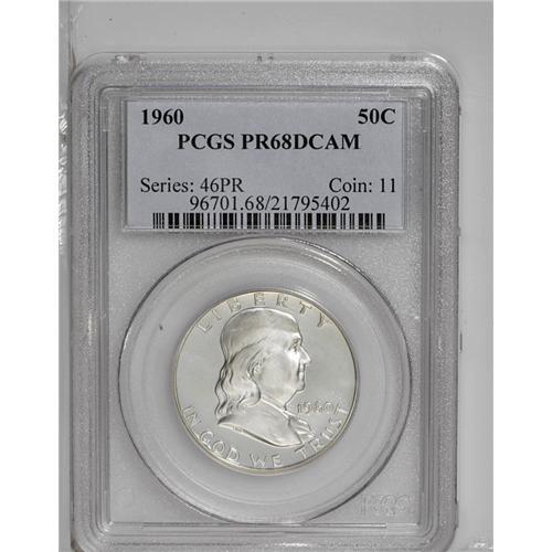<B>1960<50C> PR68 Deep Cameo PCGS.</B></I> An essentially perfect proof, with sharp black-and-white cameo contrast. An untoned beauty with frosty devices.