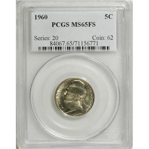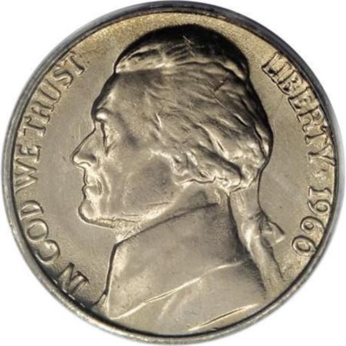 <B>1960 5C MS65 Full Steps PCGS.</B></I> Many of the Jefferson nickel issues from the past half-century are highly elusive with full steps on the reverse. This example, frosty and well-defined with lovely golden patina, just misses six steps and is one of the best certified by either NGC or PCGS. Population: 7 in 65 Full Steps, 1 finer (6/07).<BR><BR><b>Shipping:</b> Coins & Currency (<a target="_blank" href="http://www.heritageauctions.com/common/shipping.php">view shipping information</a>)