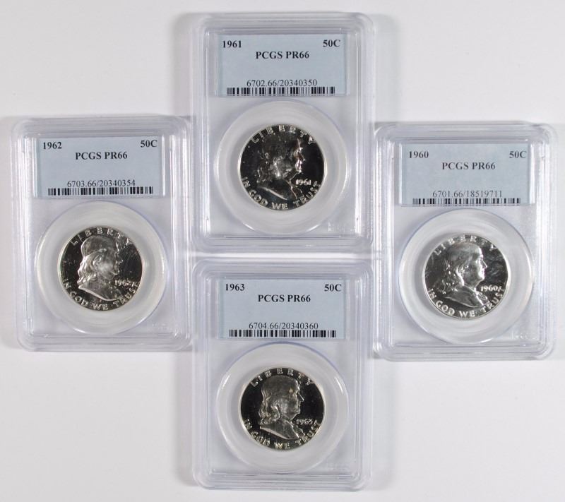 1960, 61, 62, 63 FRANKLIN HALF DOLLARS PCGS PR66
