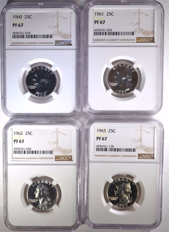1960, '61, '62, '63 WASHINGTON QTRS NGC PF67
