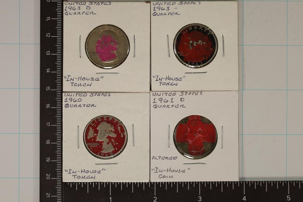 OLD IN HOUSE TOKENS WITH PAINT ON OBVERSE AND REVERSE