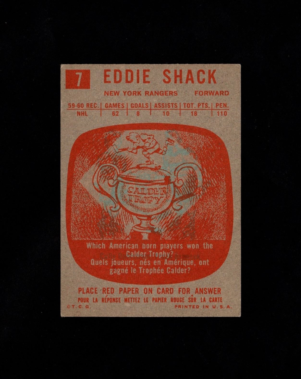 Clear the Track, it's Eddie Shack! EX/EX+ early card of one of hockey's most colorful characters!