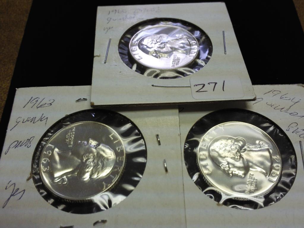 1960, 63 AND 64 WASHINGTON QUARTERS (PROOF)