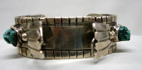 1960-70 Navajo Silver Turquoise Watch Band. Measures 6'' inside including opening and 3/4'' wide. SHI $15.