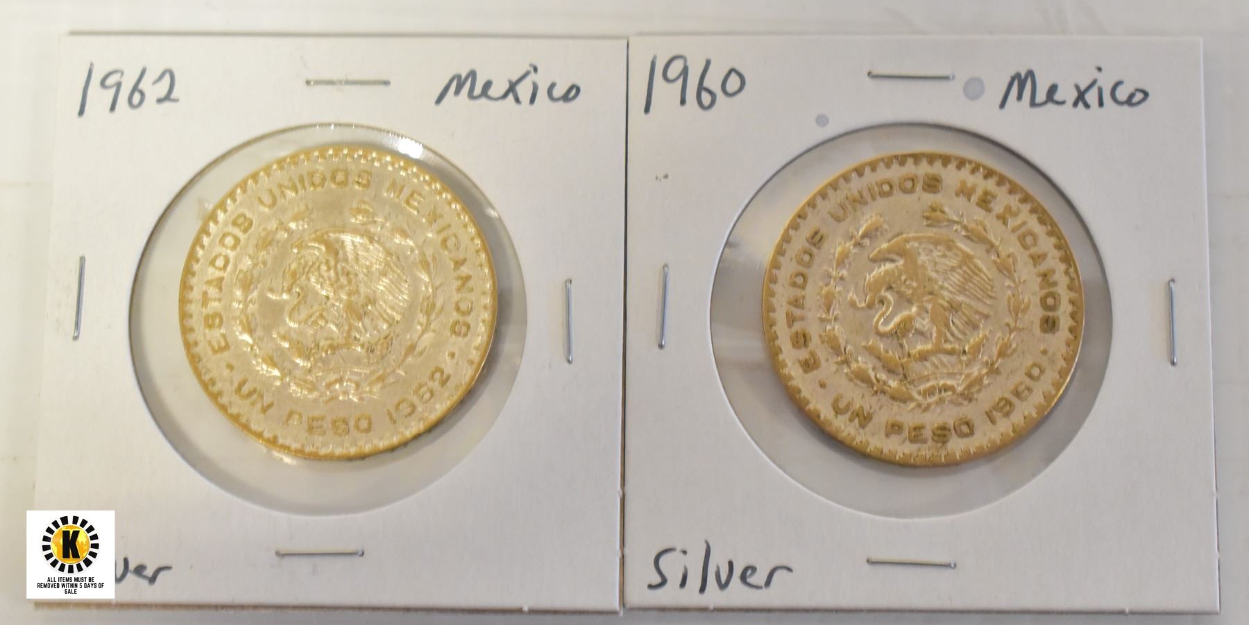 1960 AND 1962 SILVER MEXICO 1 PESO COINS