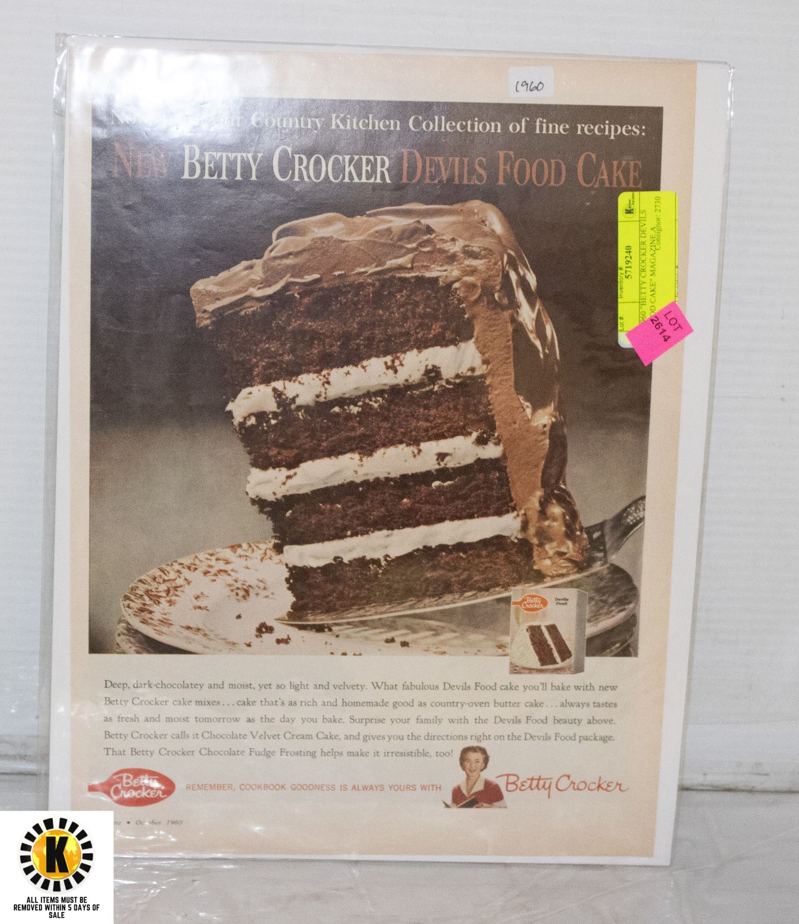 1960 "BETTY CROCKER DEVILS FOOD CAKE" MAGAZINE A