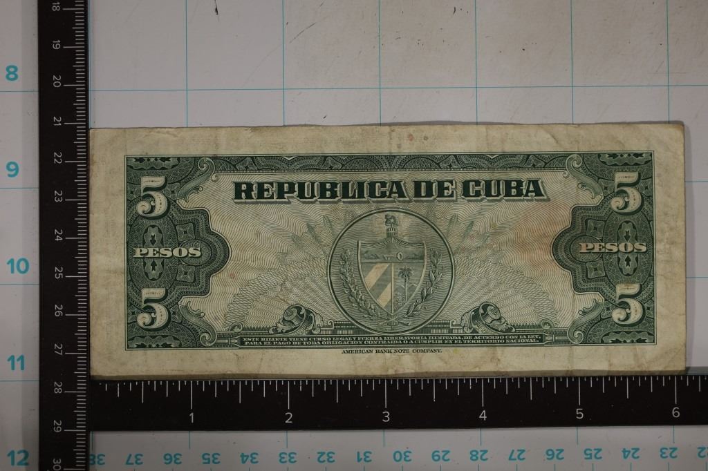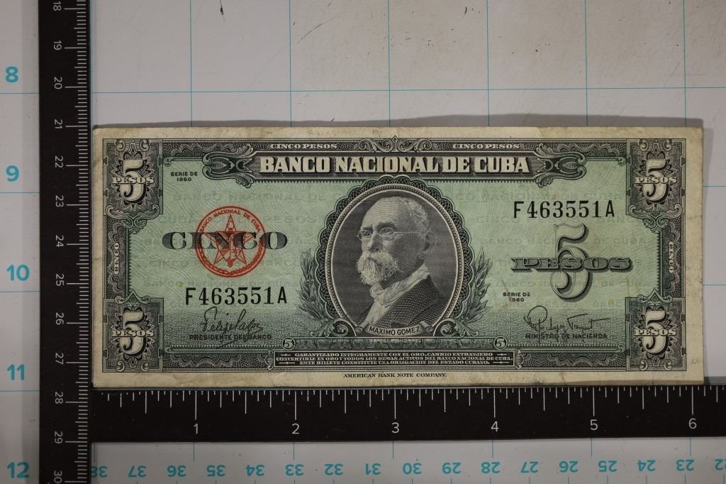 1960 CUBA 5 PESO BILL "MAXIMO GOMEZ"