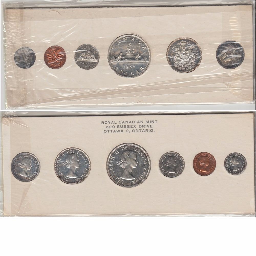 1960 Canada original Proof-Like set issued by the Mint. Cameo finish on most coins!