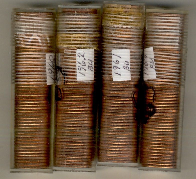 1960 Cents, 1961, 1962 and 1963. 4 rolls.
