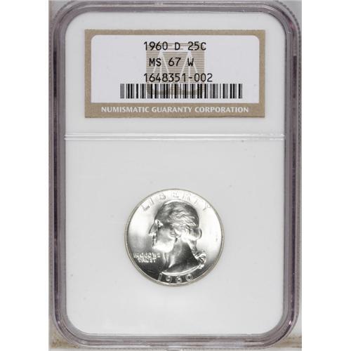 <B>1960-D 25C MS67 W NGC.</B></I> This essentially brilliant Superb Gem features dazzling luster and exquisite preservation. A full strike further enhances the eye appeal. The left branch of the wreath is bright, as ejected from the reverse die. Census: 11 in 67, 0 finer (10/06).<BR><BR><b>Shipping:</b> Coin/Currency (<a target="_blank" href="http://www.heritageauctions.com/common/shipping.php">view shipping information</a>)