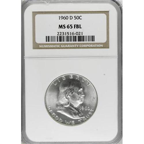 <B>1960-D 50C MS65 Full Bell Lines NGC.</B></I> NGC Census: (61/0). PCGS Population (328/16). Numismedia Wsl. Price for NGC/PCGS coin in MS65: $400. (#86679)<BR><BR><b>Shipping:</b> Coins & Currency (<a target="_blank" href="http://www.heritageauctions.com/common/shipping.php">view shipping information</a>)