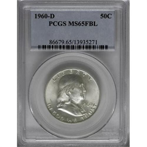<B>1960-D 50C MS65 Full Bell Lines PCGS.</B></I> PCGS Population (335/16). NGC Census: (61/0). Numismedia Wsl. Price for NGC/PCGS coin in MS65: $400. (#86679)<BR><BR><b>Shipping:</b> Coins & Currency (<a target="_blank" href="http://www.heritageauctions.com/common/shipping.php">view shipping information</a>)