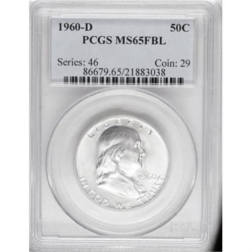 <B>1960-D 50C MS65 Full Bell Lines PCGS.</B></I> PCGS Population (336/16). NGC Census: (63/0). Numismedia Wsl. Price for NGC/PCGS coin in MS65: $400. (#86679)<BR><BR><b>Shipping:</b> Coins & Currency (<a target="_blank" href="http://www.heritageauctions.com/common/shipping.php">view shipping information</a>)