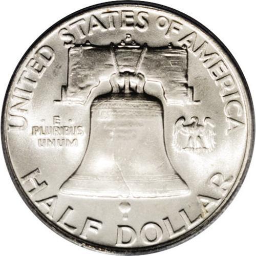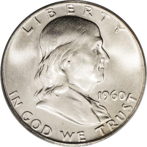 <B>1960-D<50C> MS66 Full Bell Lines PCGS.</B></I> Mostly brilliant with creamy smooth, satiny fields and subtly frosted central devices that have escaped all but the most trivial signs of contact. The lowly 1960-D Franklin has proven to be one of the more challenging issues in the entire series in well struck Premium Gem condition. Population: 16 in 66, 0 finer (4/06).