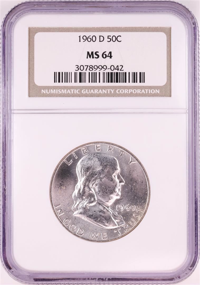 One 1960-D Franklin Half Dollar Coin NGC MS64. NGC Certified.