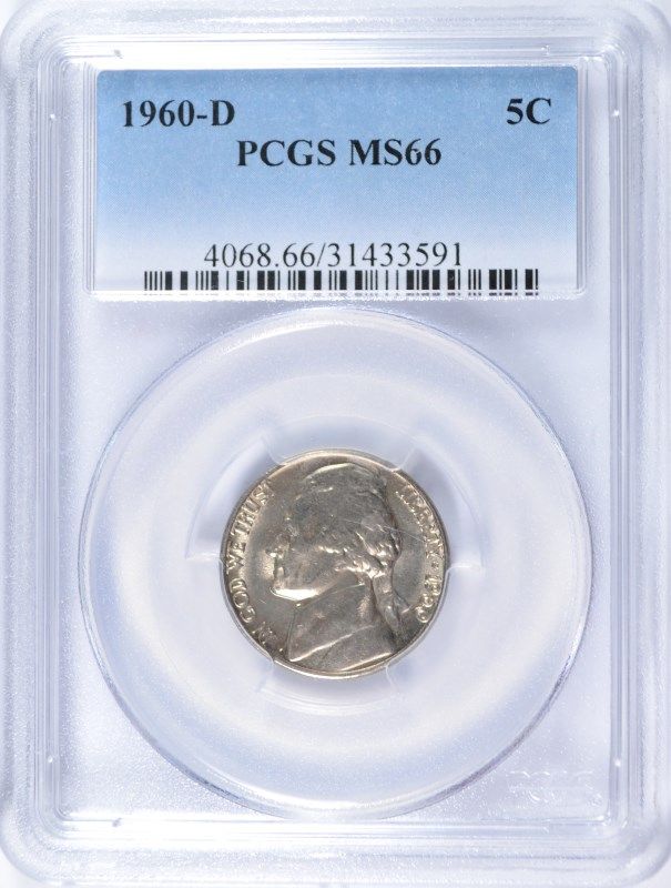 1960-D JEFFERSON NICKEL, PCGS MS-66 RARE!! PCGS PRICE GUIDE $265.00