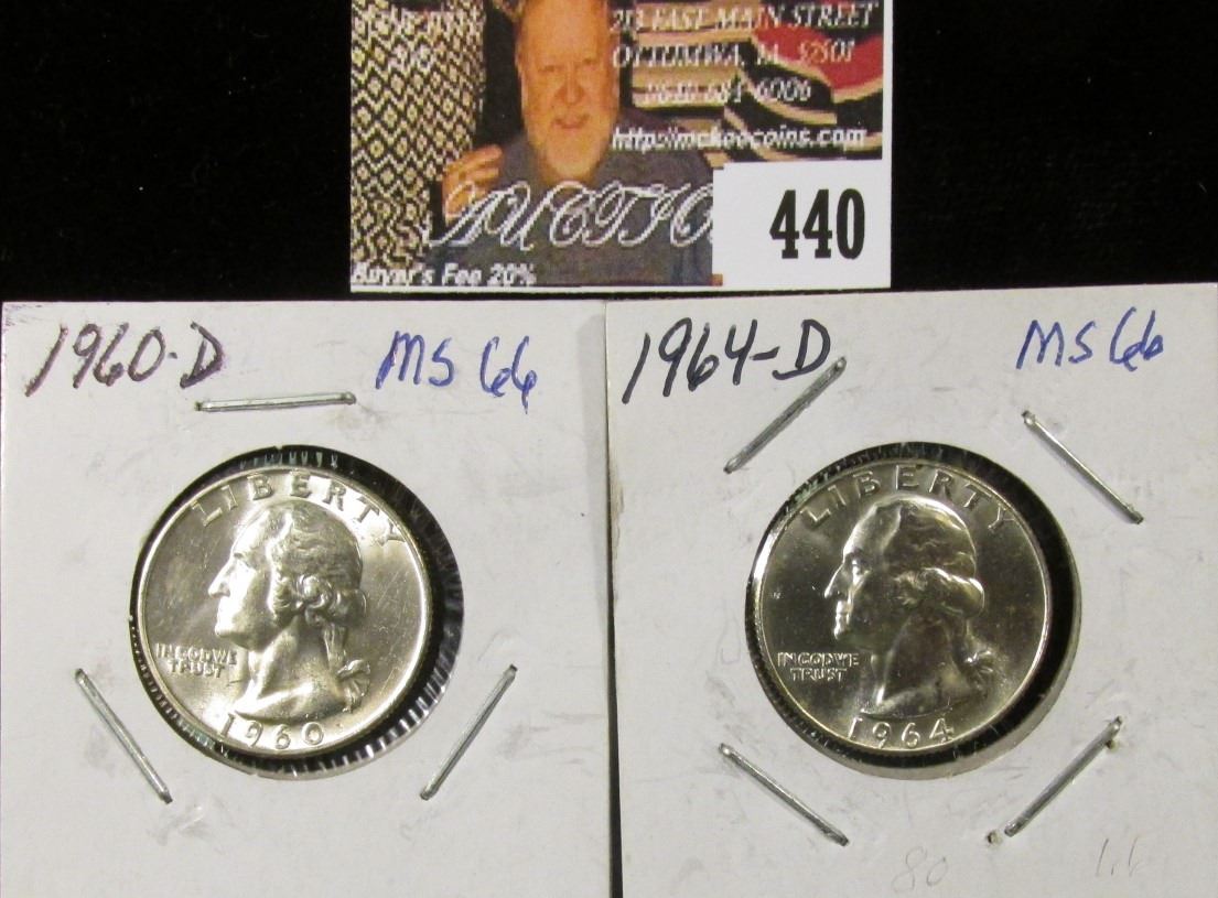 1960 D MS66 & 1964 D MS66 Silver Washington Quarters.