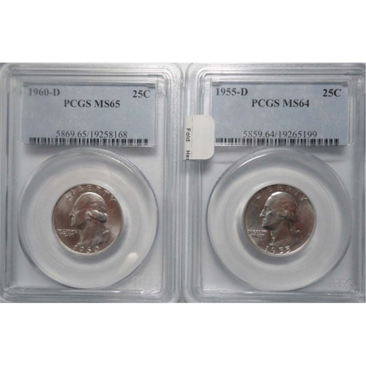 1960-D PCGS MS-65 & 1955-D PCGS MS-64 WASHINGTON QUARTERS