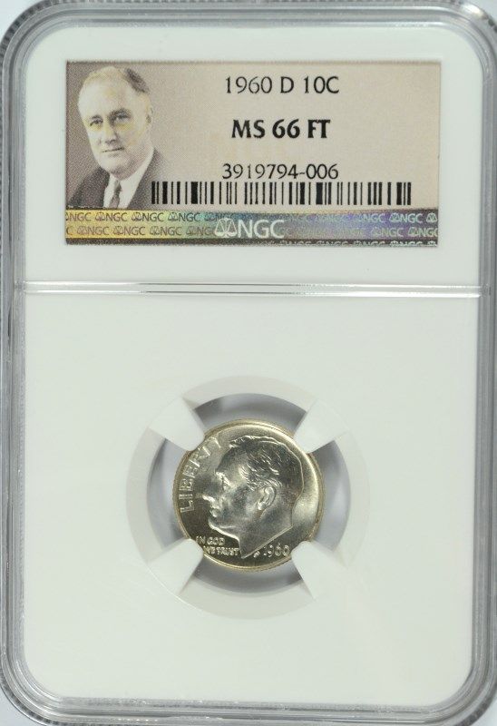 1960-D ROOSEVELT DIME, NGC MS-66 FULL TORCH! RARE!!