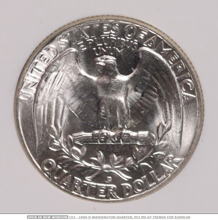 1960-D US Washington Quarter - MS 67!! - PCI MS 67!! - Value: $3000.00(US)