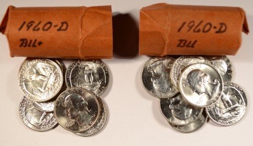 1960-D WASHINGTON QUARTER ROLL ( 40 ) COINS, MS-64-65-66 SUPER GEM BU COINS