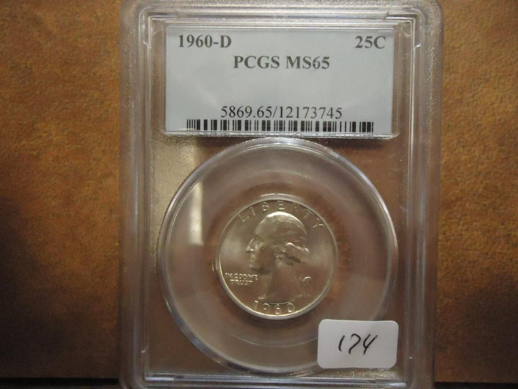 1960-D WASHINGTON SILVER QUARTER PCGS MS65