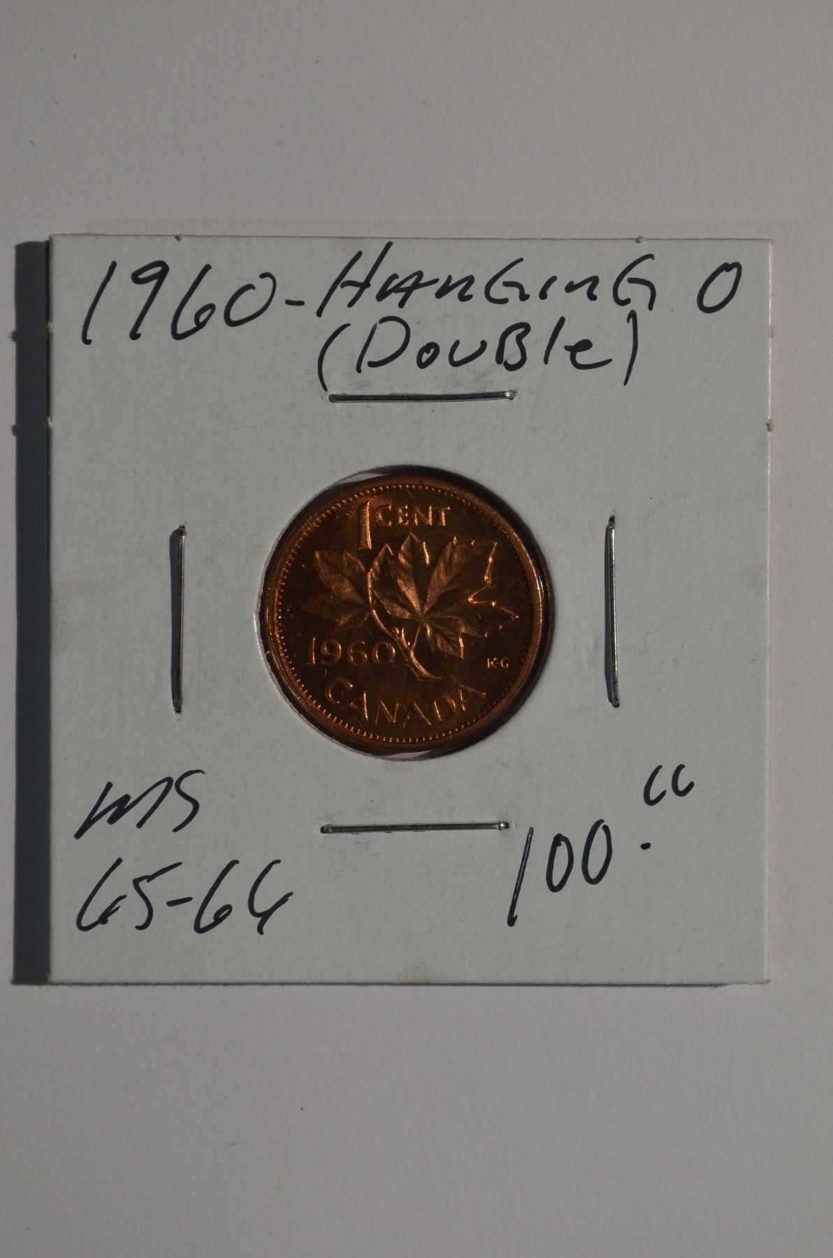 1960 - "Double Hanging 0" Canadian 1-Cent