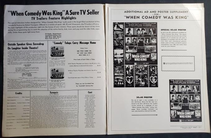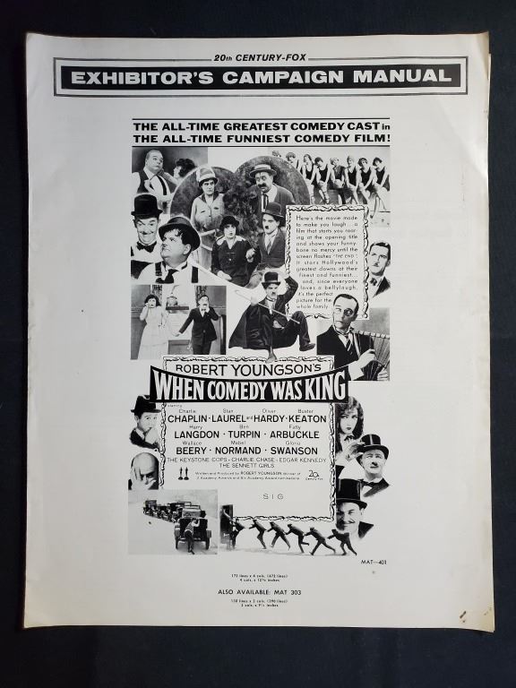 20th Century Fox Robert Youngson’s “WHEN COMEDY WAS KING†starring Charlie Chaplin, Stan Laurel, Oliver Hardy, Buster Keaton, Harry Langdon, Ben Turpin, Fatty Arbuckle, Wallace Beery, Mabel Normand, and Gloria
