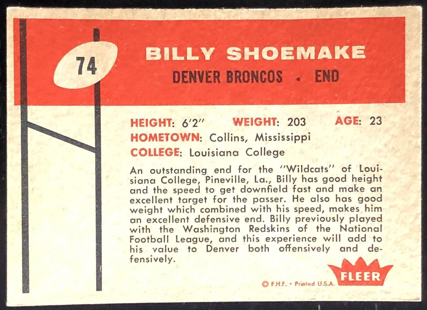 Card #74 NFL, football, vintage, rookie