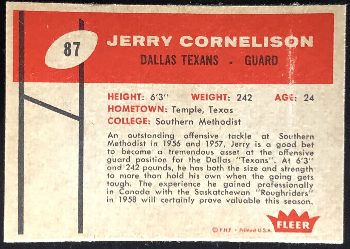 Card #87 NFL,football, vintage, rookie