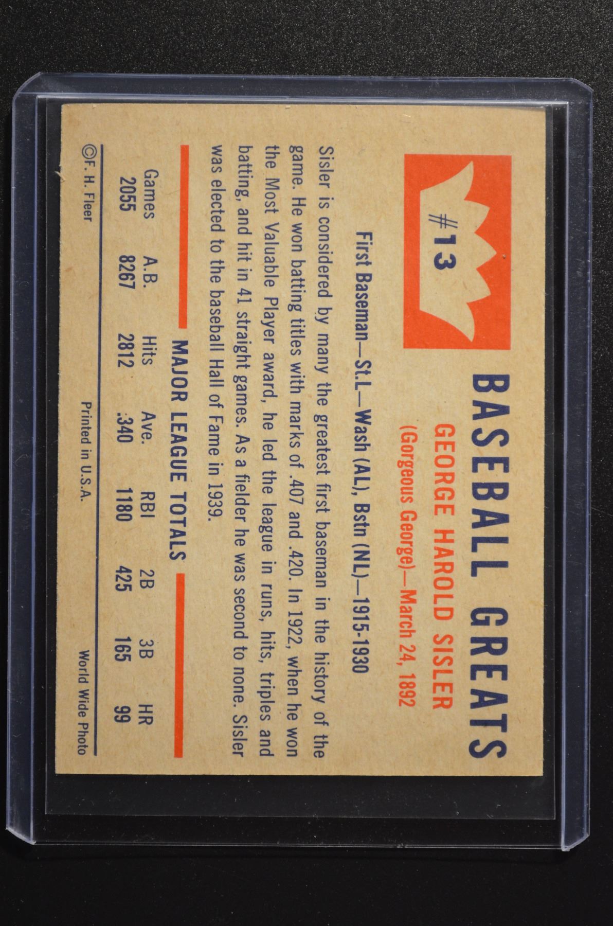 1960 Fleer #13 George Sisler