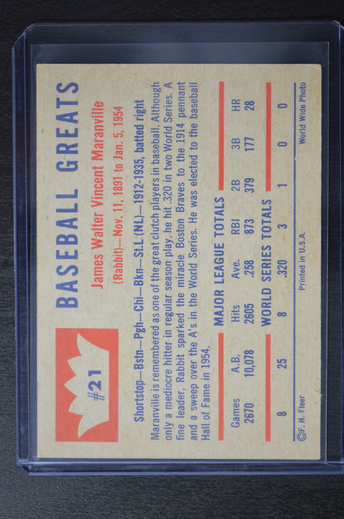 1960 Fleer #21 Rabbit Maranville DP