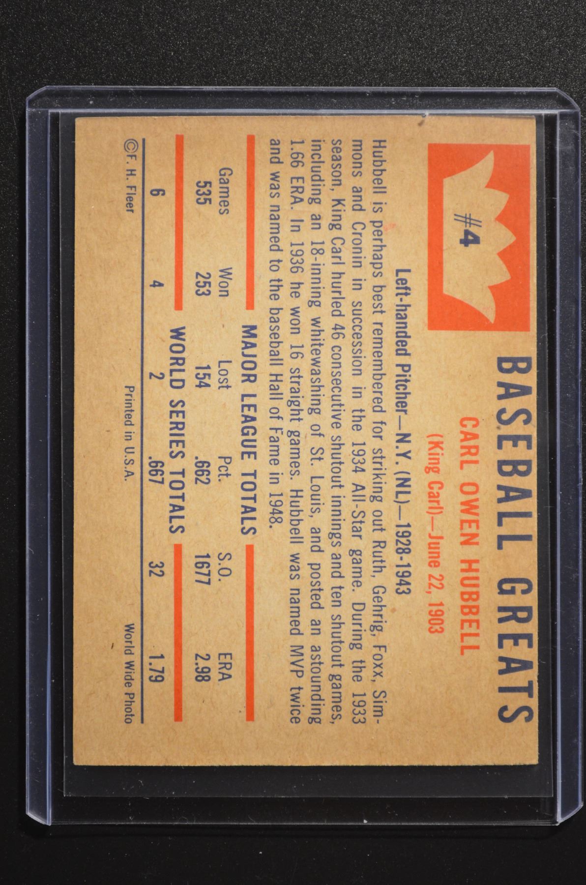 1960 Fleer #4 Carl Hubbell