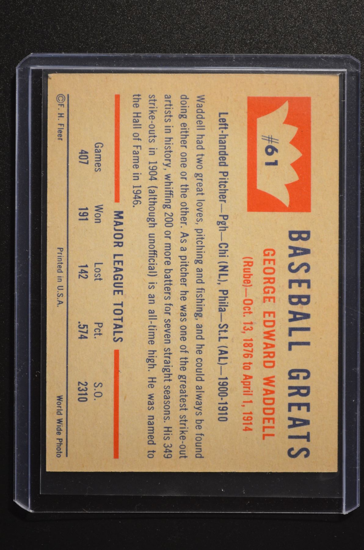 1960 Fleer #61 Rube Waddell DP