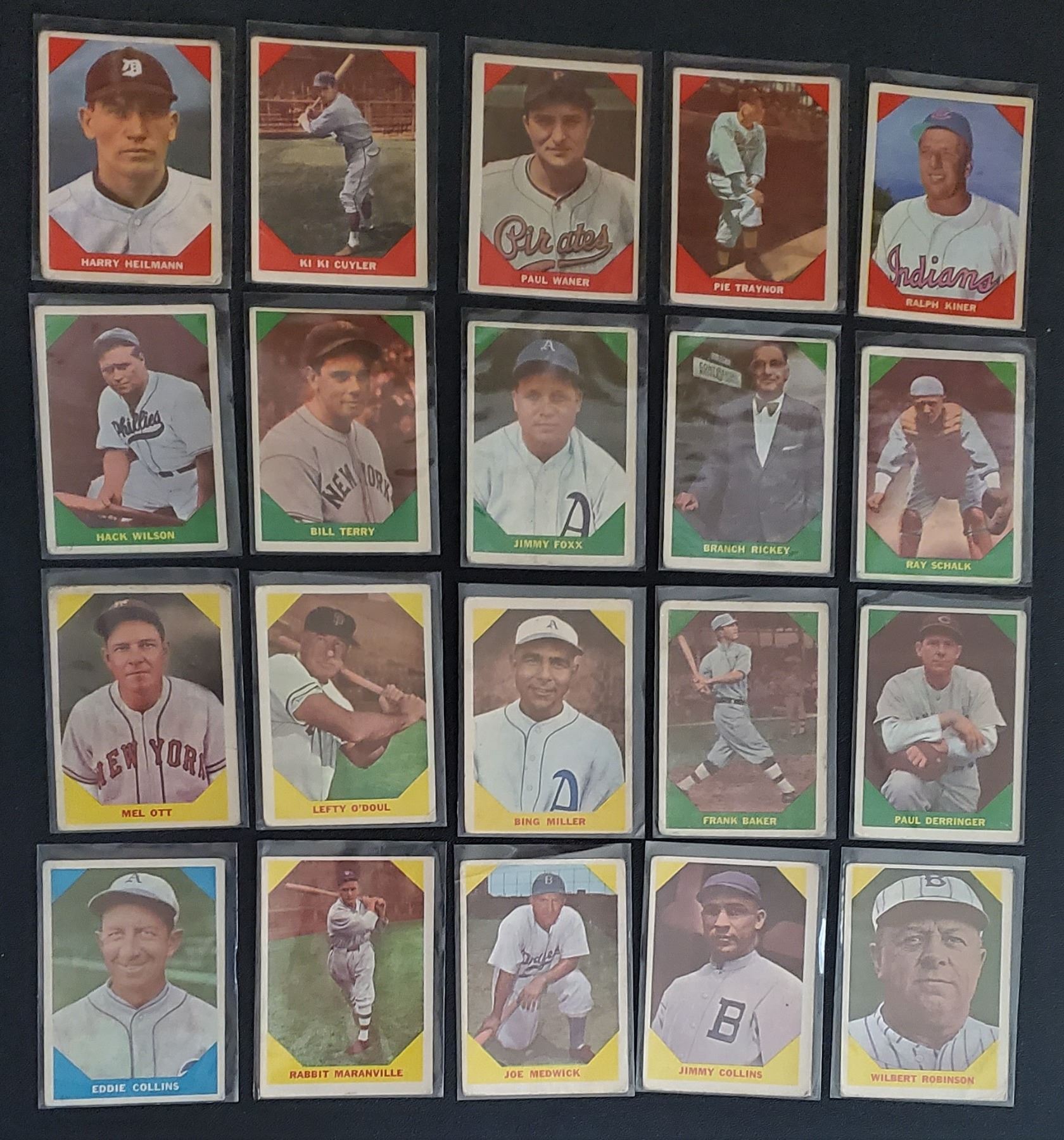 Cards grade GD to EX, mostly VG, VG+ and VG/EX, two cards * have ink marks on the back. Cards include #20 E.Collins, #21 Maranville, #22 Medwick, #25 J.Collins, #33 W. Robinson*, #36 Ott, #37 O'Doul, #39 B.Miller, #41 Home Run Baker, #43 Derringer, #48 H.Wilson, #52 Terry, #53 Foxx, #55 Rickey, #56 Schalk, #65 Heilmann, #75 Cuyler, #76 P.Waner, #77 Traynor, #79 Kiner*.
