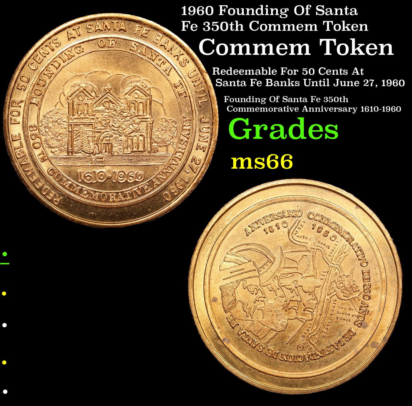 1960 Founding Of Santa Fe 350th Commem Token Grades GEM+ Unc. Situated at 7,000 feet in the foothills of the southern Rocky Mountains, Santa Fe is the highest and oldest capital in the U.S. Founded between 1607 and 1610, it’s America’s second oldest city.
