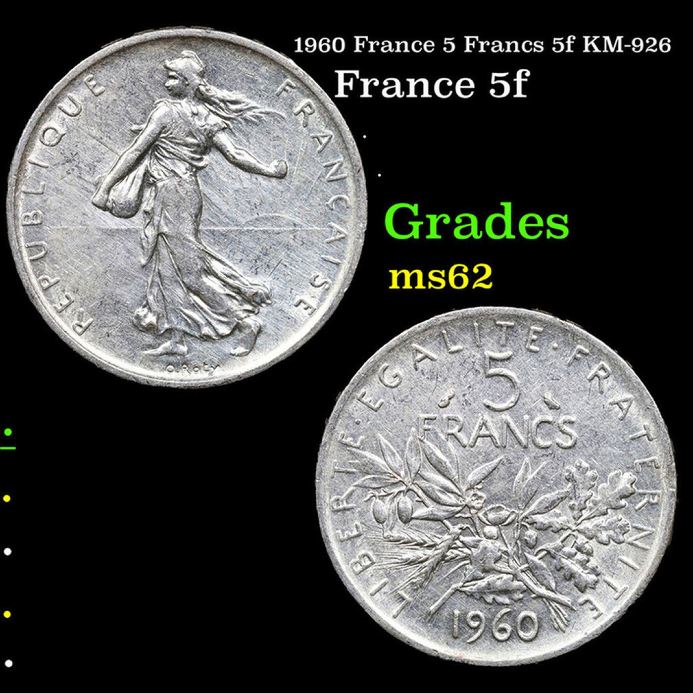 1960 France 5 Francs 5f KM-926 Grades Select Unc.